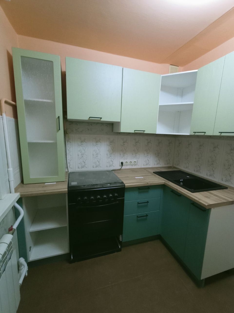 все бы ничего, ведь батарея начинается не от угла, и вылет отопительной трубы позволяет поставить туда 400-ый модуль, НО! не позволяет его полностью открыть + выдвинуть выдвижной ящик