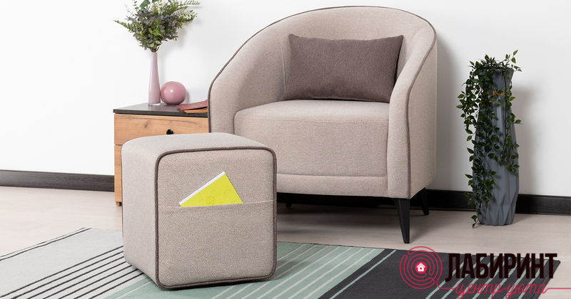 Боковые карманы позволяют удобно хранить небольшие предметы и станут отличным местом для пультов управления, настольной книги или недочитанной газеты. Имеет полноценное посадочное место. Без короба для хранения. Пуф имеет среднюю высоту посадки - 440 мм. Максимальная нагрузка - 130 кг.