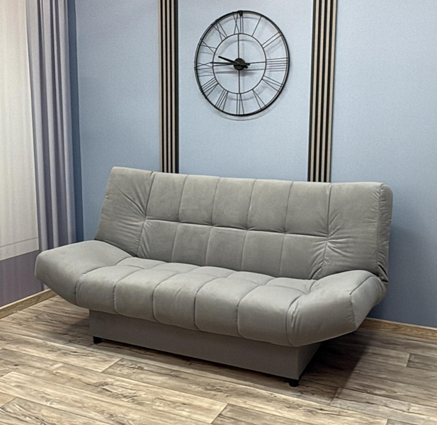 Диван-кровать "Клик-Кляк"НПБ.Выгодной отличительной особенностью дивана «Клик-Кляк» является возможность трансформации в три положения: для сидения, для отдыха в полу-сидящем положении и для сна. Не менее выгодной особенностью дивана является съемный чехол. Название диван получил за механизм трансформации, который издает характерный звук щелчка при его раскладывании. Внутри дивана имеется вместительный короб для хранения постельных принадлежностей.