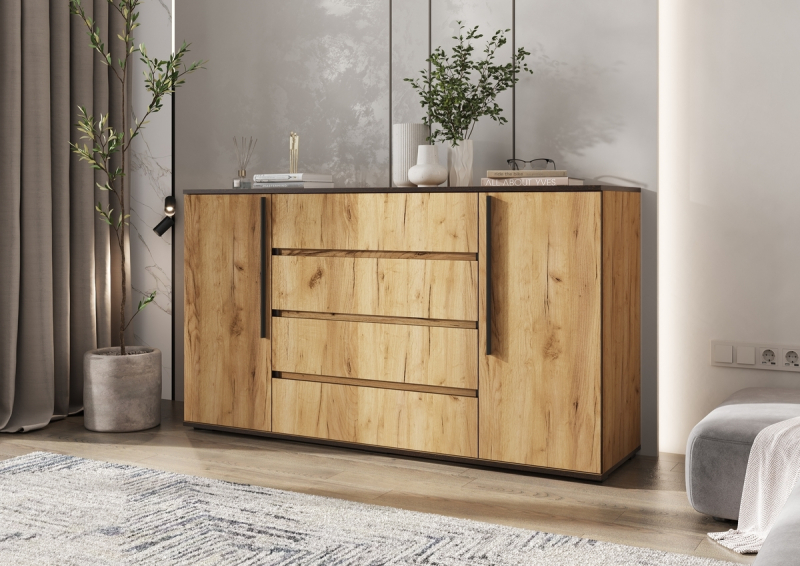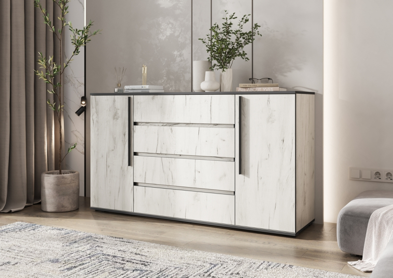 Главная/ Каталог / Мебель для гостиной / Модульные системы для гостиной / Модульная гостиная "Норд" ЛДСП (Миф) / Комод 2 двери 4 ящика "Норд" ЛДСП (МФ)
