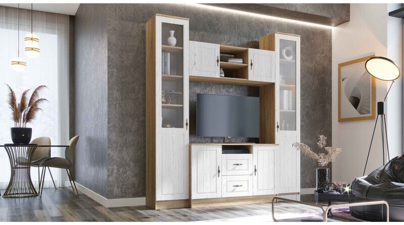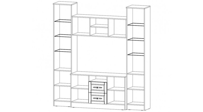 Центральная часть с тумбой ТВ «Виктория». Коллекция предоставляет широчайший выбор модульных элементов с возможностью комбинирования различных мебельных групп — спальни, гостиные и подростковые — для формирования функционального интерьера. "Виктория" является отражением модных мебельных тенденций и продумана до мелочей с точки зрения дизайна и удобства эксплуатации. Центральная часть оснащена ящиками полного выдвижения, а также системой открытых и закрытых полок, в которых Вы сможете разместить вещи, документы, книги, за стеклянными дверцами украсить полки статуэтками или семейными фото.