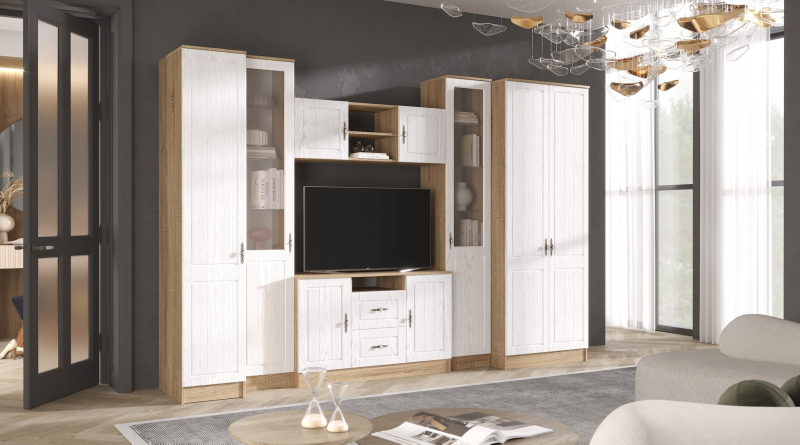 Комод «Виктория». Коллекция предоставляет широчайший выбор модульных элементов с возможностью комбинирования различных мебельных групп — спальни, гостиные и подростковые — для формирования функционального интерьера. "Виктория" является отражением модных мебельных тенденций и продумана до мелочей с точки зрения дизайна и удобства эксплуатации. Комод оснащен ящиками полного выдвижения и закрытыми полками, в которых Вы сможете разместить вещи, документы, а комод украсить статуэтками или семейными фото.