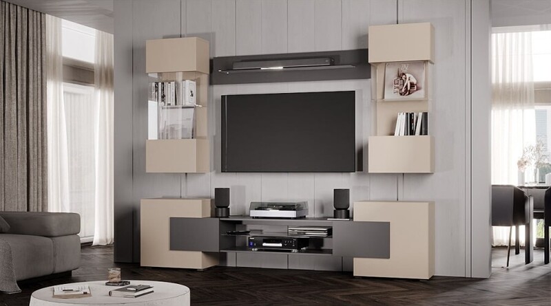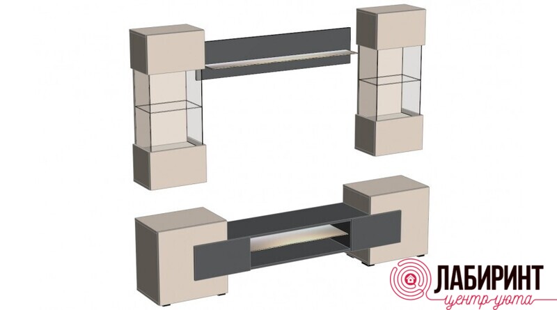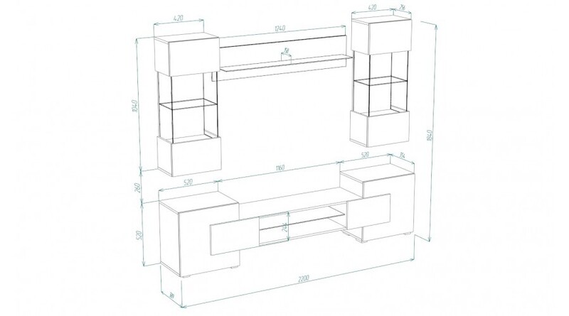 Универсальная гостиная Фэнтези впишется в любой интерьер. Система открытых и закрытых полок, делает гостиную более функциональной.