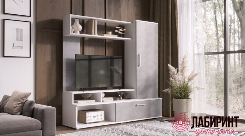 Мини гостиная Грейс впишется в любой интерьер. Система открытых и закрытых полок и ящиков делает гостиную более функциональной.