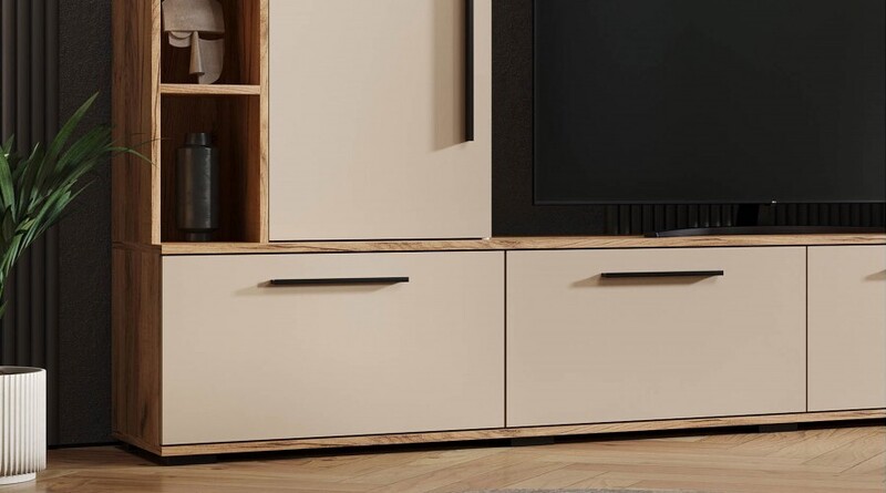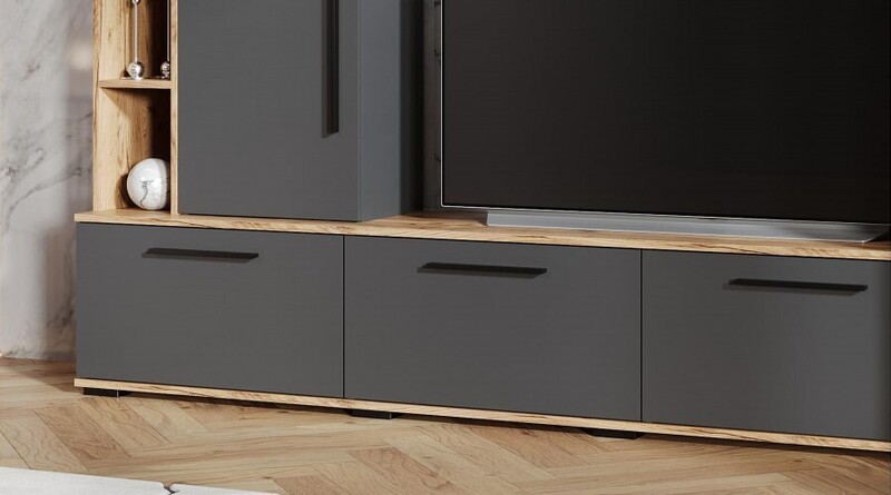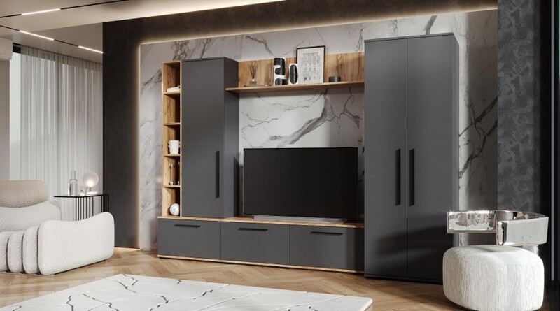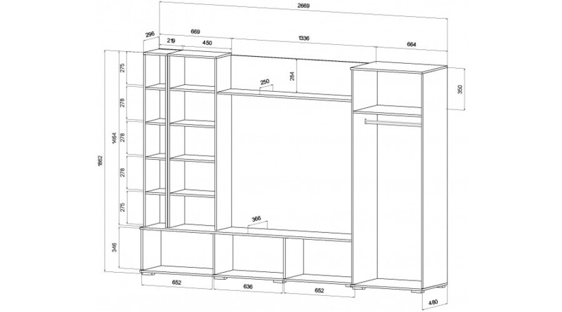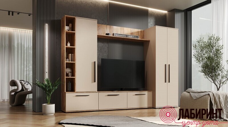 Вместительная гостиная Леванте впишется в любой интерьер. Система открытых и закрытых полок, ящиков и шкафа для одежды делает гостиную более функциональной.