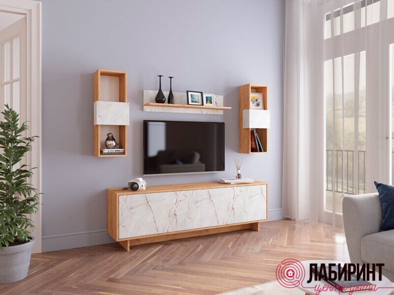- Тумба по ТВ – 1600*340*500 (ш*г*в) Тумба имеет два отделения для хранения, открывание – нажатием на фасад. Дверь откидывается вперед.