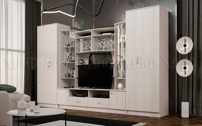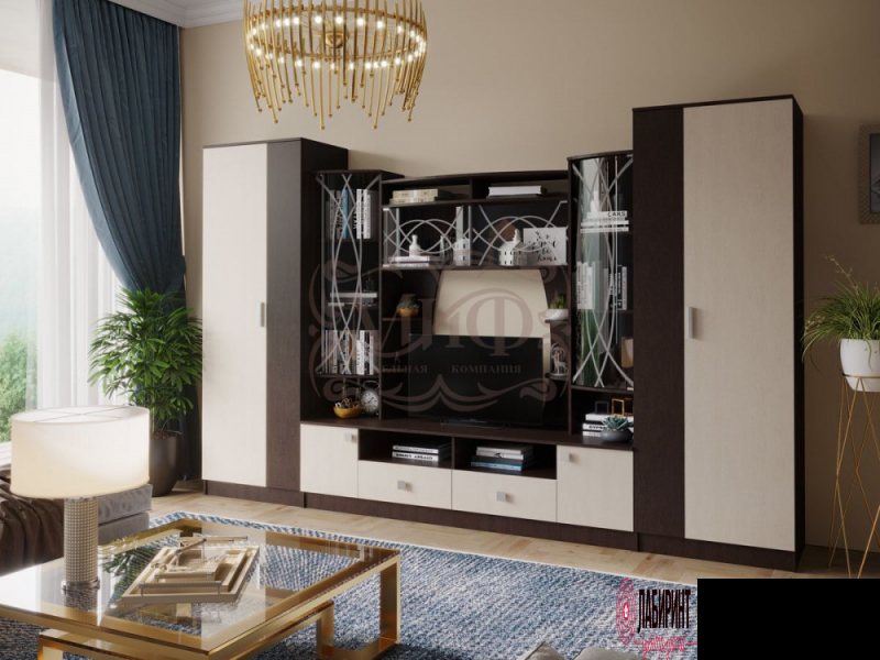 Стенка "Женева" Строгая, но не скучная геометрия, модное контрастное цветовое решение фасадов, высокое качество исполнения – отличный выбор для ценителей красоты и рациональных форм.