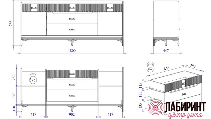 Широкий комод коллекции "Сиде" - сочетание изысканности, современных декоров и функционала.