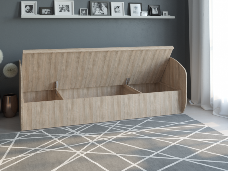 Односпальная кровать оборудованная подъемным механизмом с ящиком для белья, в котором удобно хранить постельные принадлежности и межсезонные вещи. Размеры кровати 950х700х2035мм прекрасно подойдут, как для тинейджера, так и для взрослого человека, поэтому такая мебель пользуется спросом у покупателей. И это вполне объяснимо: стильный дизайн, надежная фурнитура и современные материалы стали визитной карточкой нашей продукции.