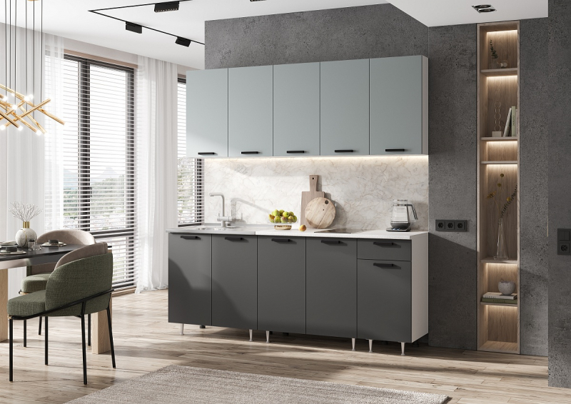 Стеновая панель, мойка, цоколь, карниз, подсветка, бытовая техника в стоимость кухонного гарнитура не входят и приобретается отдельно.