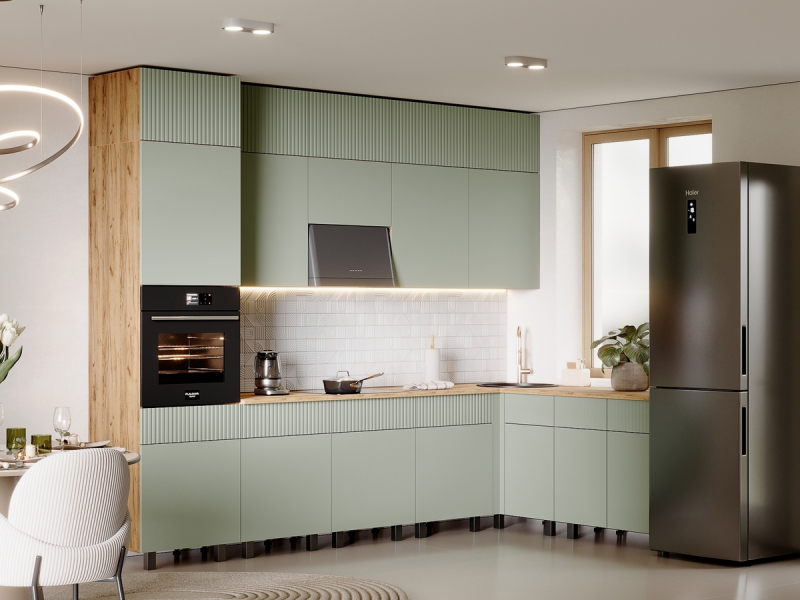 Главная/ Каталог / Мебель для кухни / Готовые кухонные гарнитуры / Кухня "Оливия Нью" 3,0*1,8 Компоновка №2 МДФ (МФ)
