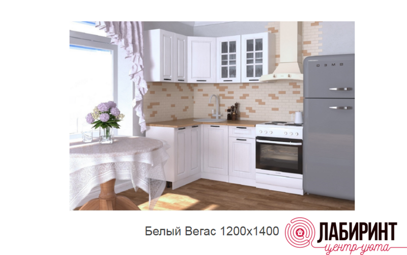 Главная/ Каталог / Мебель для кухни / Готовые кухонные гарнитуры / Кухня 15 "Белый Вегас" 1200*1400 (РМР)
