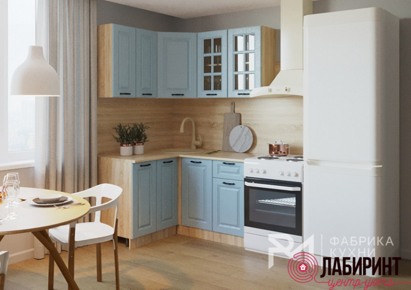 Главная/ Каталог / Мебель для кухни / Готовые кухонные гарнитуры / Кухня 6 "Роял Вуд Голубой Вегас" 1200х1400 (РМР)