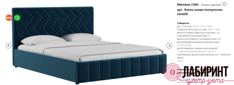 Габаритные размеры спального места: 2000мм*1800мм