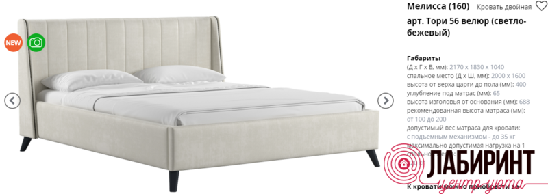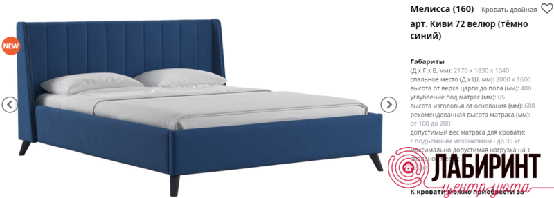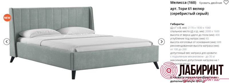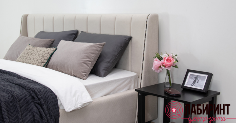 Декор: Изголовье с боковыми накладками, декорированными мебельным молдингом-гвоздиками.