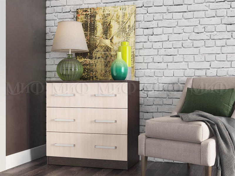 Главная/ Каталог / Мебель для спальни / Модульные системы для спальни / Модульная спальня "Бася" (Миф) / Комод 3 ящика "Бася" ЛДСП" (МФ)
