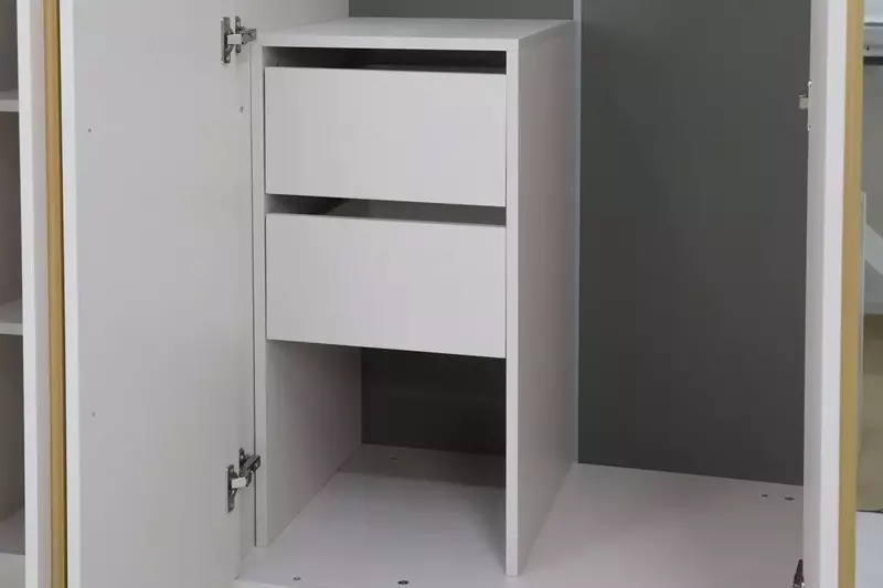 Дополнительная секция с 2-мя выдвижными ящиками для установки в шкафы "Николь-25" или "Николь-27". Позволяет увеличить функциональность пространства и служит для организации дополнительного места для хранения.