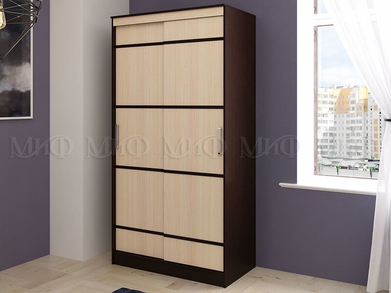 Главная/ Каталог / Мебель для спальни / Модульные системы для спальни / Модульная спальня "Сакура" ЛДСП (Миф) / Шкаф-купе 2-х дверный 1,14м "Сакура" ЛДСП (МФ)