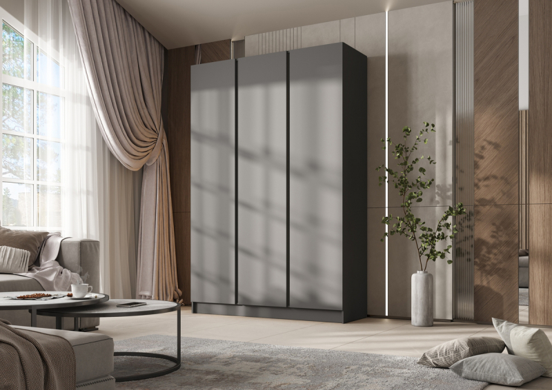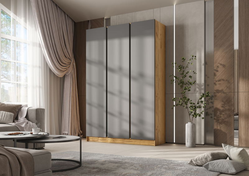 Шкаф трехдверный 1500 "Келвин". Вместительный и современный шкаф для одежды, который станет удобным решением для спальни, гардеробной или прихожей. Контрастное сочетание фасадов и планки подчеркнет стильный интерьер помещения.