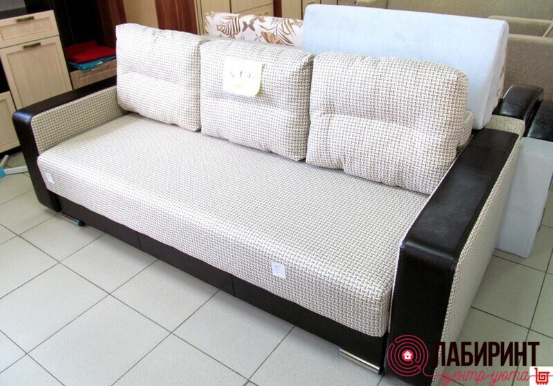 Предложенная в продажу модель диван-кровать «Рондо 2» удовлетворит любителей традиционных форм. Подлокотники и бельевой ящик отделаны практичными накладками из искусственной кожи контрастного по отношению к обивке цвета. Недорогой мебельный шенил пастельных оттенков прекрасно гармонирует с обивкой подушек эффектной фактуры.