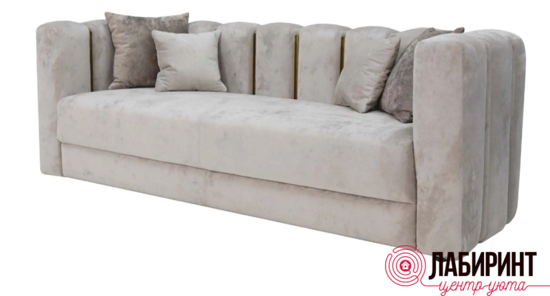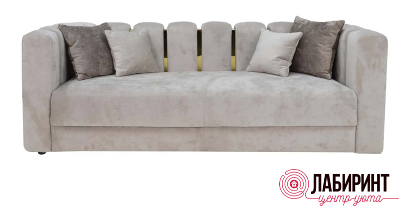 Диван прямой неразборный "Руно" Необычное решение для вашего интерьера не только дома, но и в офисе – наш новый диван с независимым пружинным блоком. В комплекте идут 4 подушки, что обеспечит максимальный комфорт, а золотые металлические вставки создадут неповторимый вид для вашей комнаты.