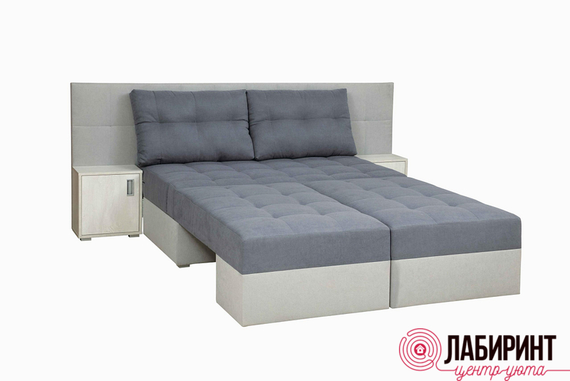 Диван-кровать "Даллас" Предлагаем совместить функционал кровати, прикроватных тумб и практичность дивана в одной модели – Даллас. Стильно, практично, функционально и просто необычно! Половинки дивана совмещаются к середине при помощи механизма трансформации «ножницы», легко фиксируясь между собой, образуют полноценное место двухспальной кровати 2000х1500 с пружинным матрасом, с задекорированной утяжками мягкой прикроватной спинкой и двумя открывающимися тумбами, ручки открывания тумбочек оформлены в цвете матовый хром.