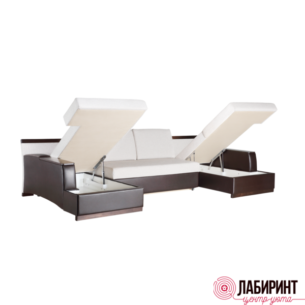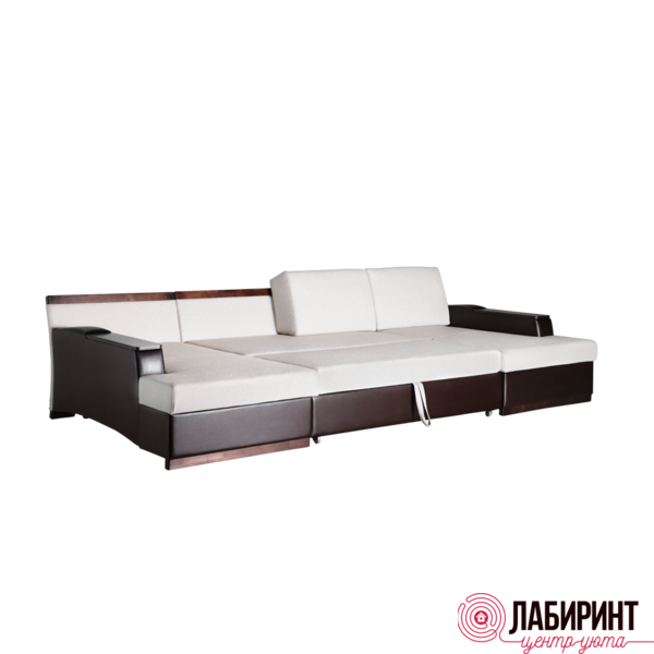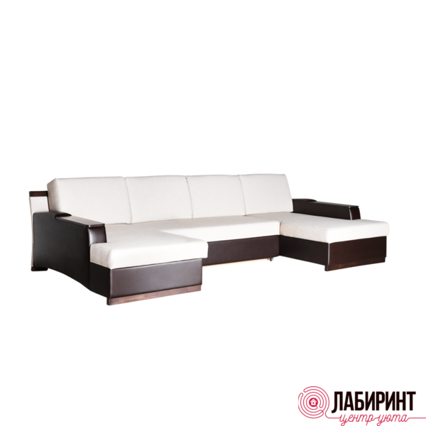 Большой угловой диван "Премьер Люкс" с декором из древесины отлично впишется в любой интерьер от лофта до классики.