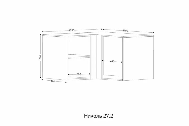 Главная/ Каталог / Мебель для гостиной / Модульные системы для гостиной / Модульная гостиная "Николь" (ИВА) / Антресоль угловая "Николь 27.2" (ИВА)