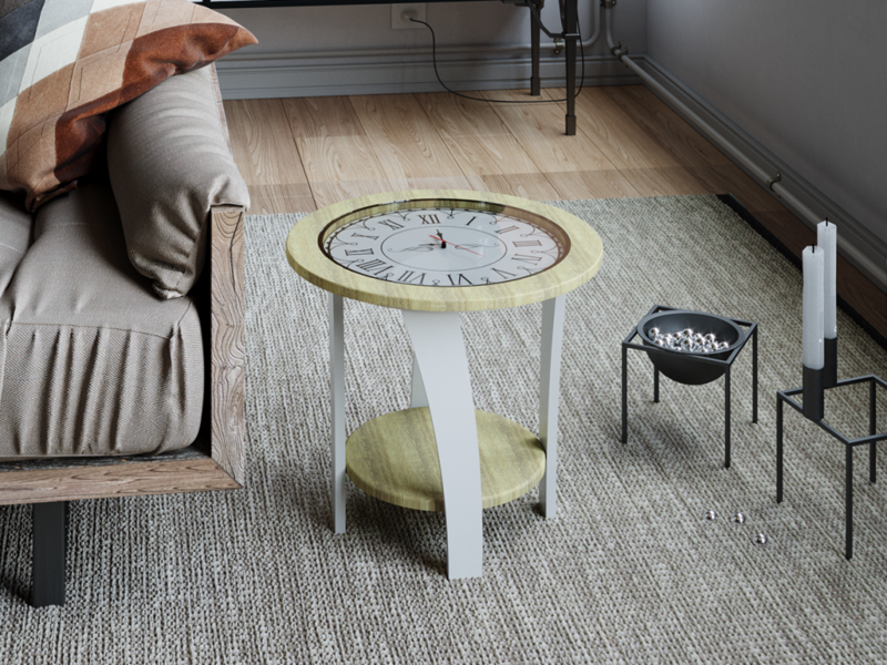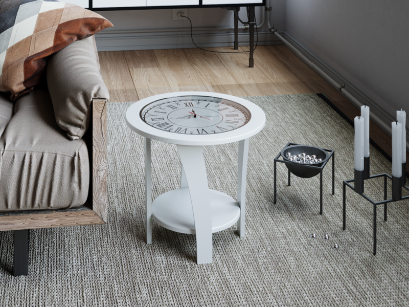 Стол журнальный Эстет. Круглый стол со встренными часами станет стильным дополнением для Вашей гостиной или спальни.