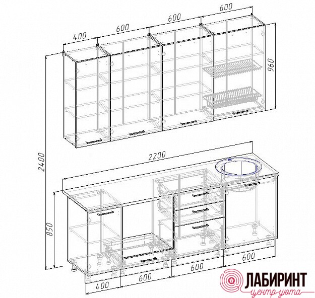 Ширина кухни 2200мм