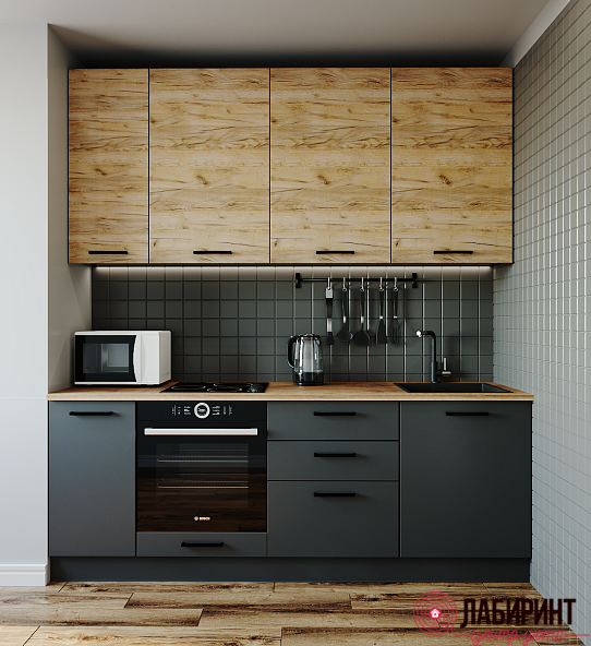 - Нижние модули: цвет корпуса:Антрацит; фасады: Антрацит, столешница: Дуб Вотан