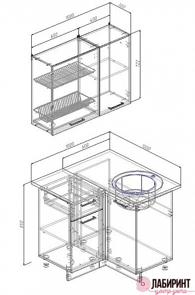 Угловой модуль под мойку 1000мм