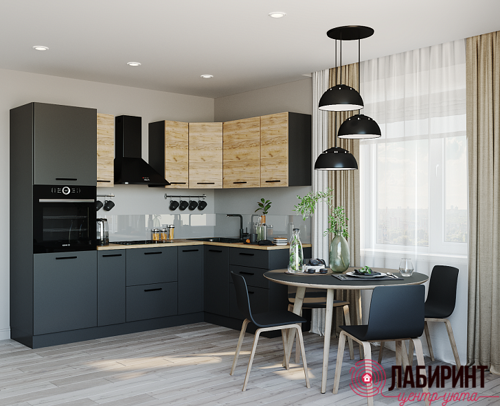Нижние модули: Цвет корпуса: Антрацит/Фасады: Антрацит/Столешница: Дуб Вотан