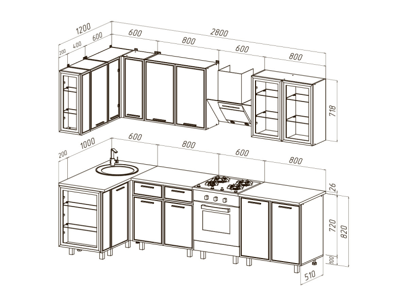 Кухня "Бьянка" 1,2*2,8м.