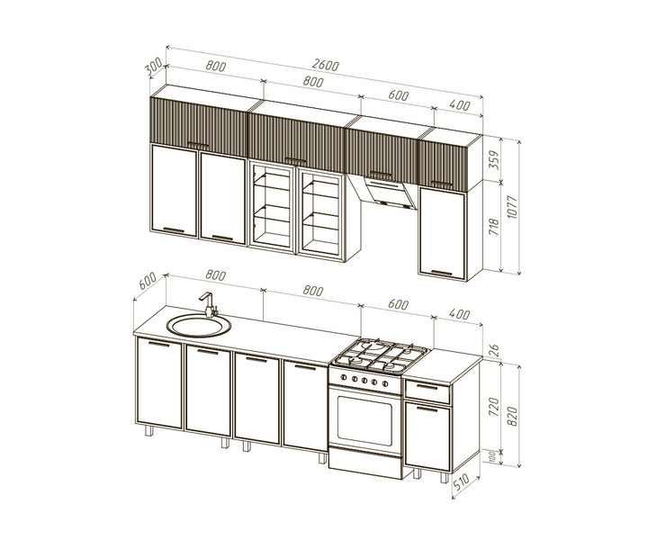 Посудосушитель, накладная мойка, стеновая панель, смеситель приобретается отдельно.