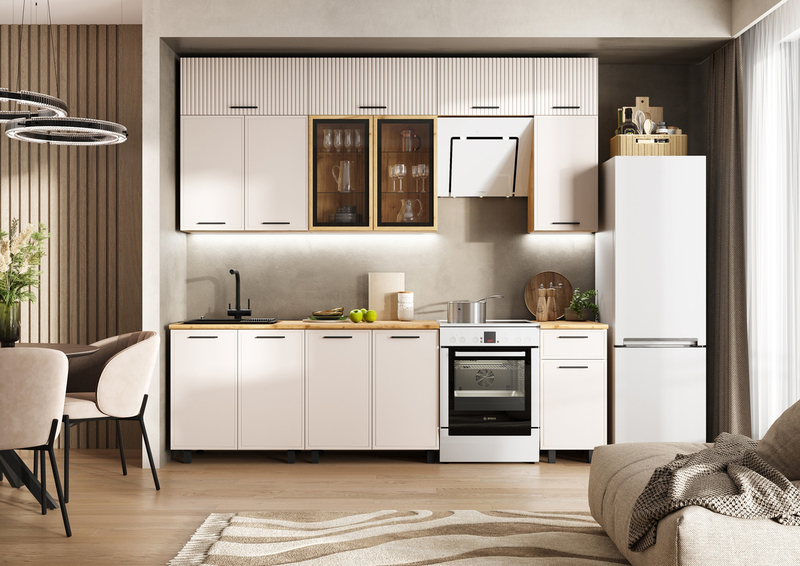 Кухня "Бьянка" 2,6 (1080). Светлый фасад кухни - классика на все времена, не смотря на модные течения.