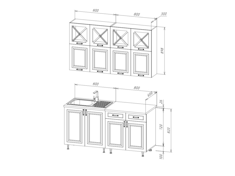 Главная/ Каталог / Мебель для кухни / Готовые кухонные гарнитуры / Кухня "Констанция" 1,6 компоновка №4 МДФ (МФ)