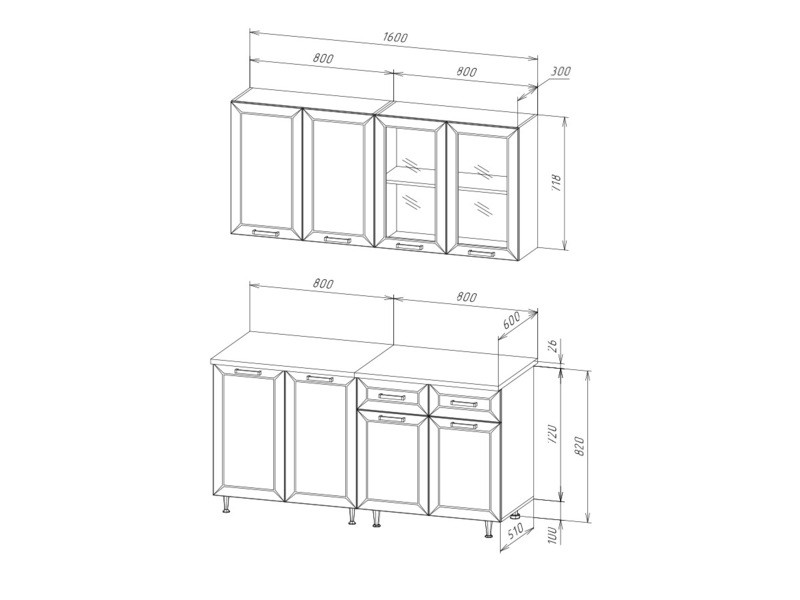 Главная/ Каталог / Мебель для кухни / Готовые кухонные гарнитуры / Кухня "Монако" 1,6 компоновка №1 МДФ (МФ)