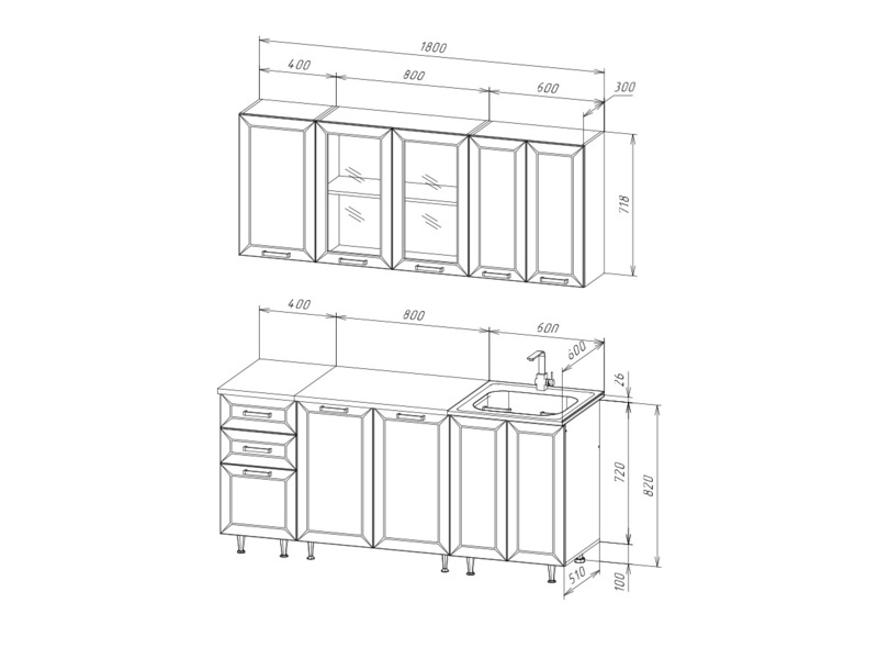 Главная/ Каталог / Мебель для кухни / Готовые кухонные гарнитуры / Кухня "Монако" 1,8 компоновка №1 МДФ (МФ)