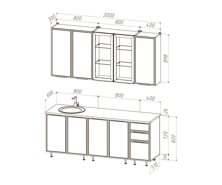 Посудосушитель, накладная мойка, стеновая панель, смеситель приобретается отдельно.