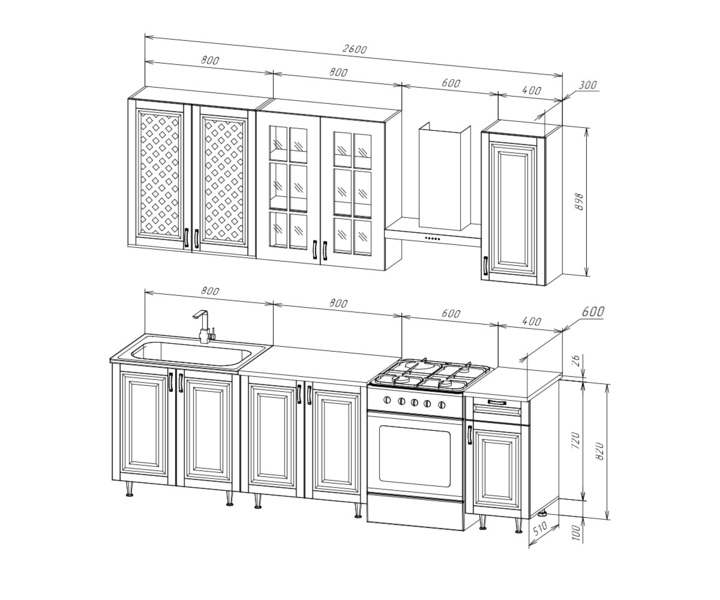 Главная/ Каталог / Мебель для кухни / Готовые кухонные гарнитуры / Кухня "Престиж" 2,0 (900). Компоновка №4 (решетка) МДФ (МФ)