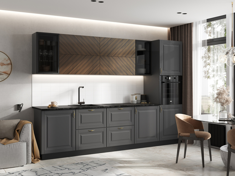 Главная/ Каталог / Мебель для кухни / Готовые кухонные гарнитуры / Кухня "Престиж" 3,0. Компоновка №1 МДФ (МФ)