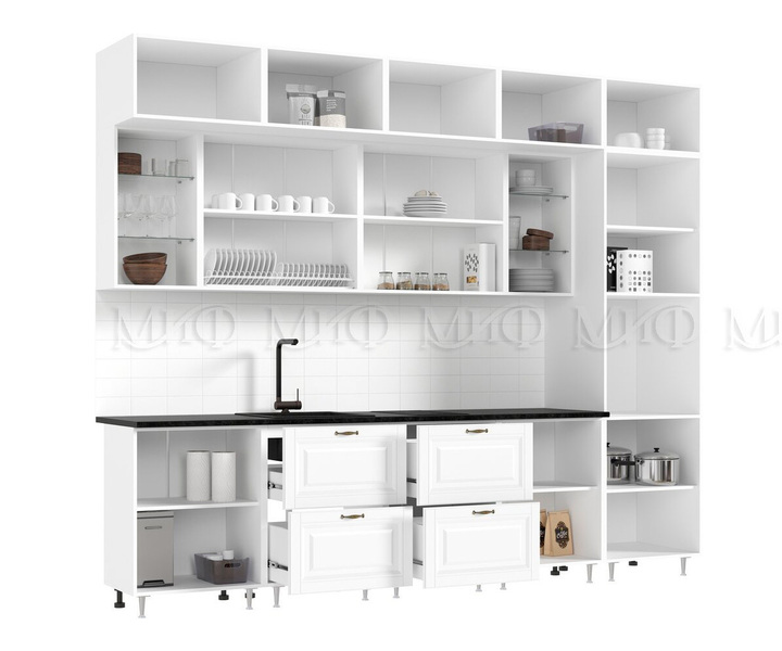 Посудосушитель, накладная мойка, стеновая панель, смеситель приобретается отдельно.