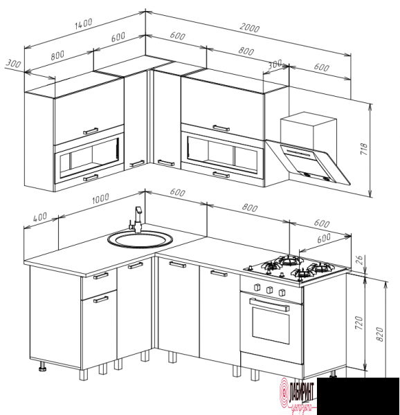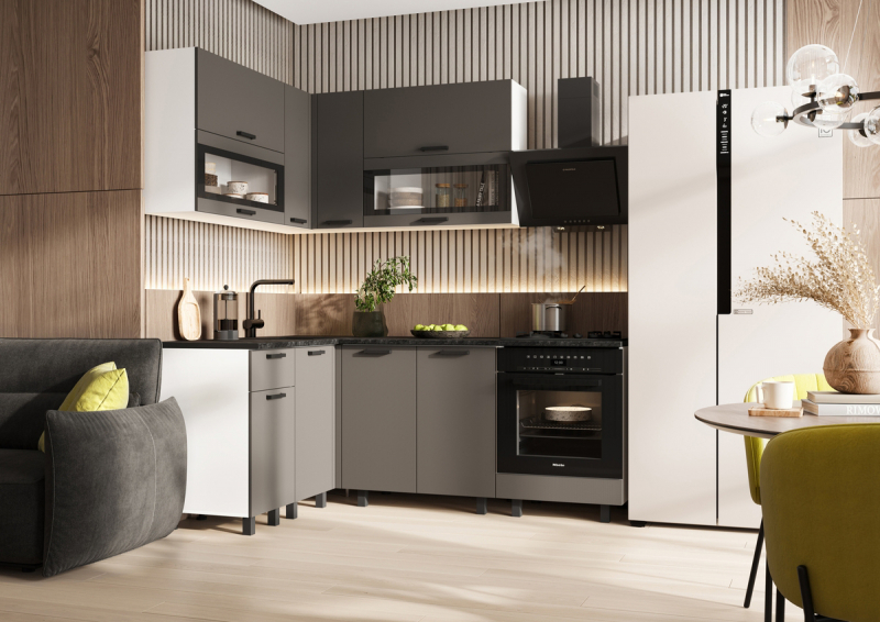 Главная/ Каталог / Мебель для кухни / Готовые кухонные гарнитуры / Кухня "Техно" 1,4*2,0. Компоновка №2 (МФ)