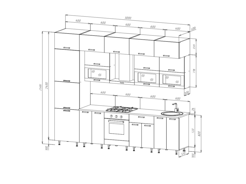 Главная/ Каталог / Мебель для кухни / Готовые кухонные гарнитуры / Кухня "Техно" 3,0. Компоновка №2 (МФ)