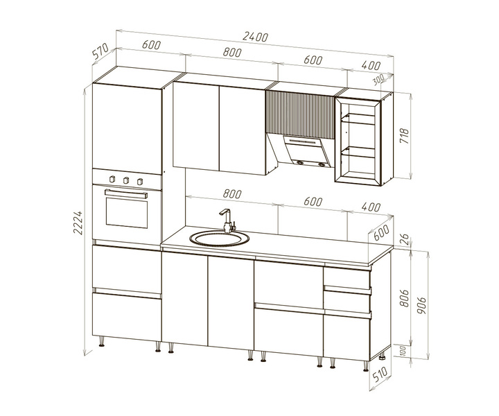 Посудосушитель, накладная мойка, стеновая панель, смеситель приобретается отдельно.
