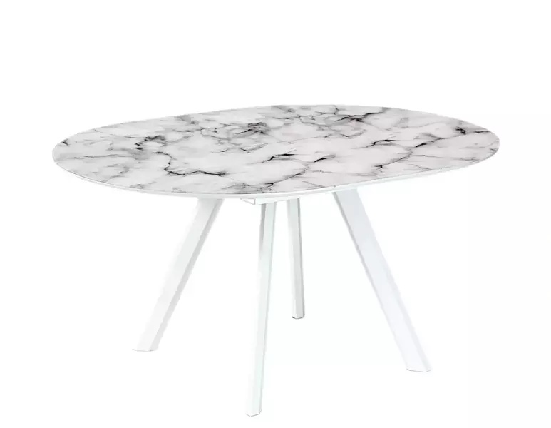 Столешница выполнена из ЛМДФ и покрыта пленкой ПВХ с закаленным стеклом. Раскладка стекло с механизмом "бабочка". Фотопечать "Мрамор".