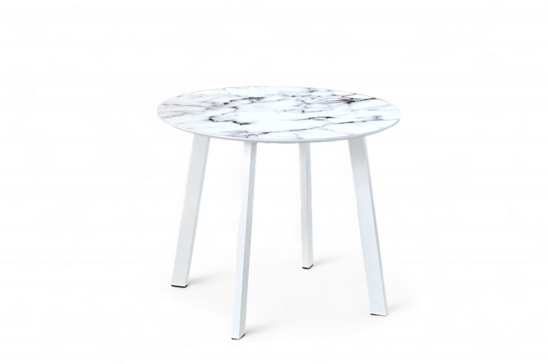 Стол обеденный "Милан". Нераздвижной круглый стол. Столешница выполнена из ЛМДФ и покрыта пленкой ПВХ с закаленным стеклом. Фотопечать "Мрамор".