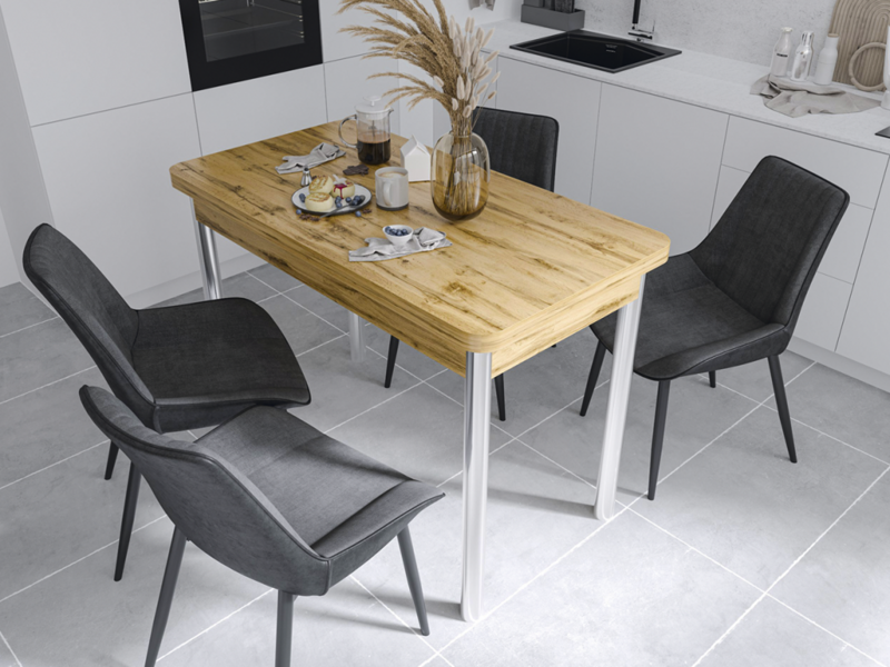 Кухонный обеденный стол отличается надежной конструкцией и стильным дизайном, который гармонично впишется в любые современные интерьеры. Прямоугольная форма делает его практичным выбором для использования как в небольших помещениях, так и в просторных залах.