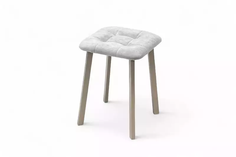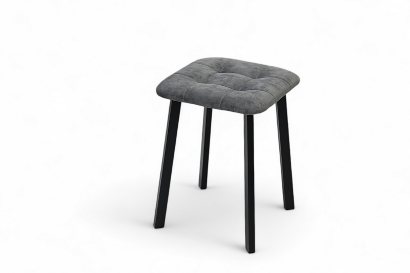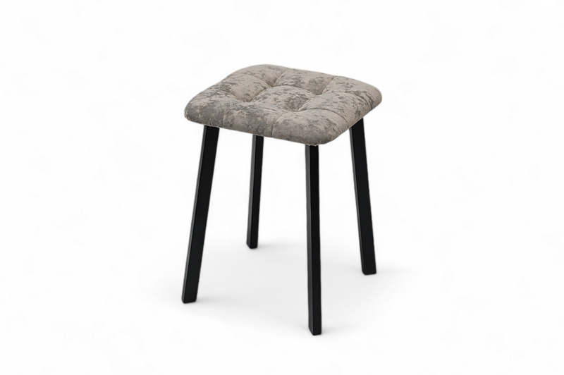 - Сиденье табурета обтянуто тканью, с использованием техники каретной стяжки.